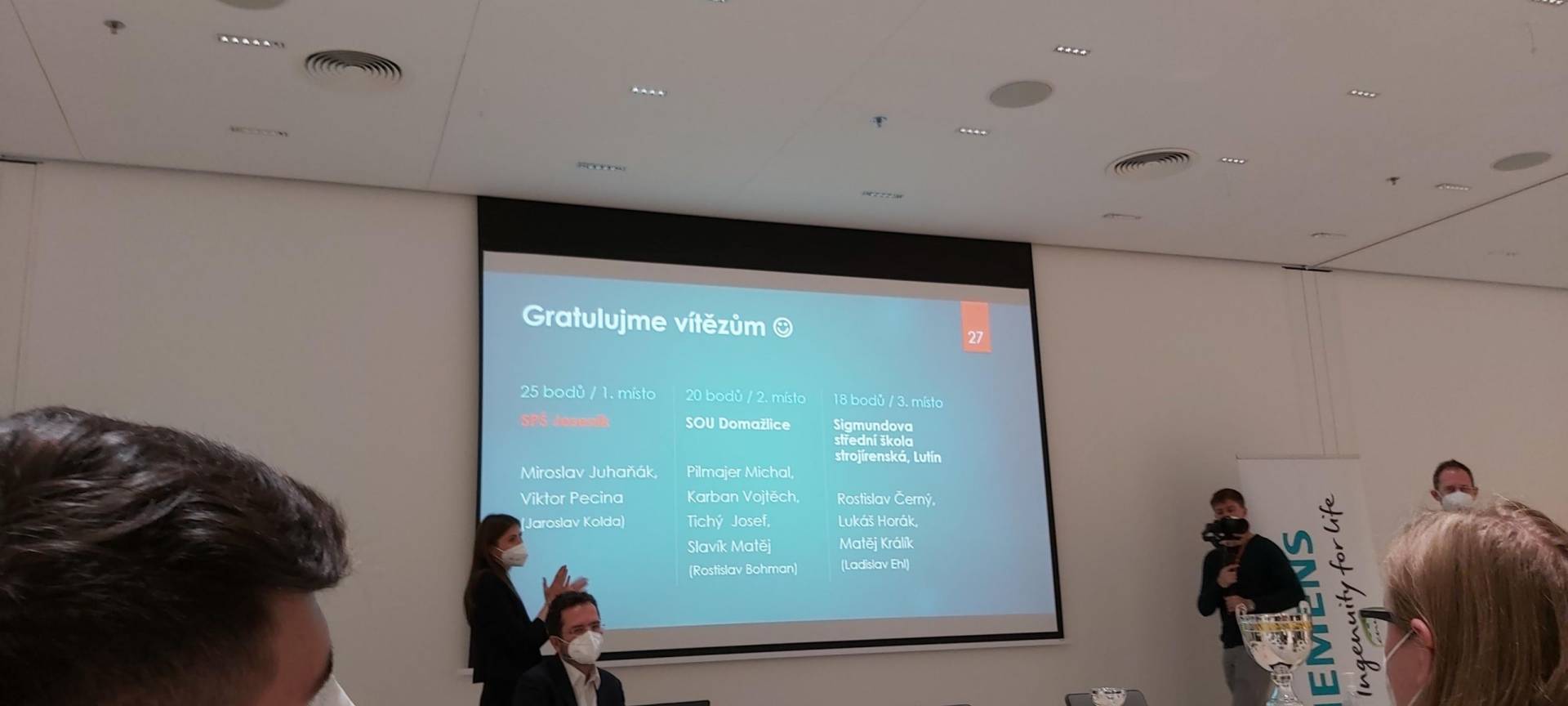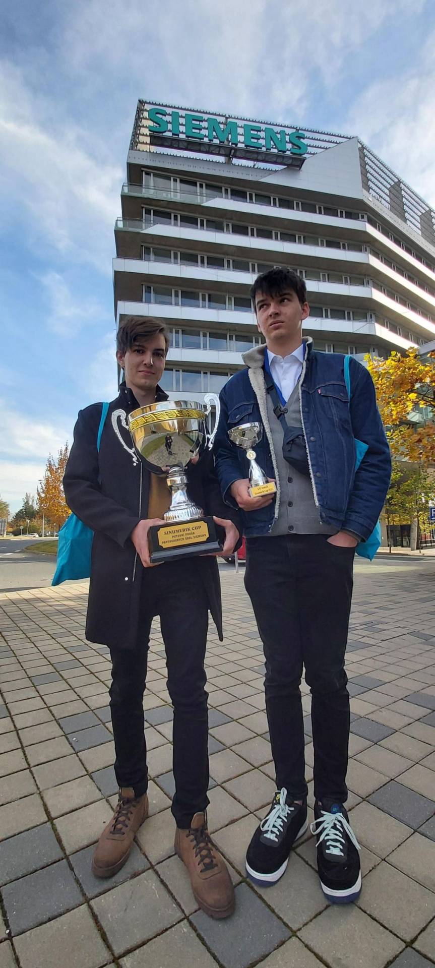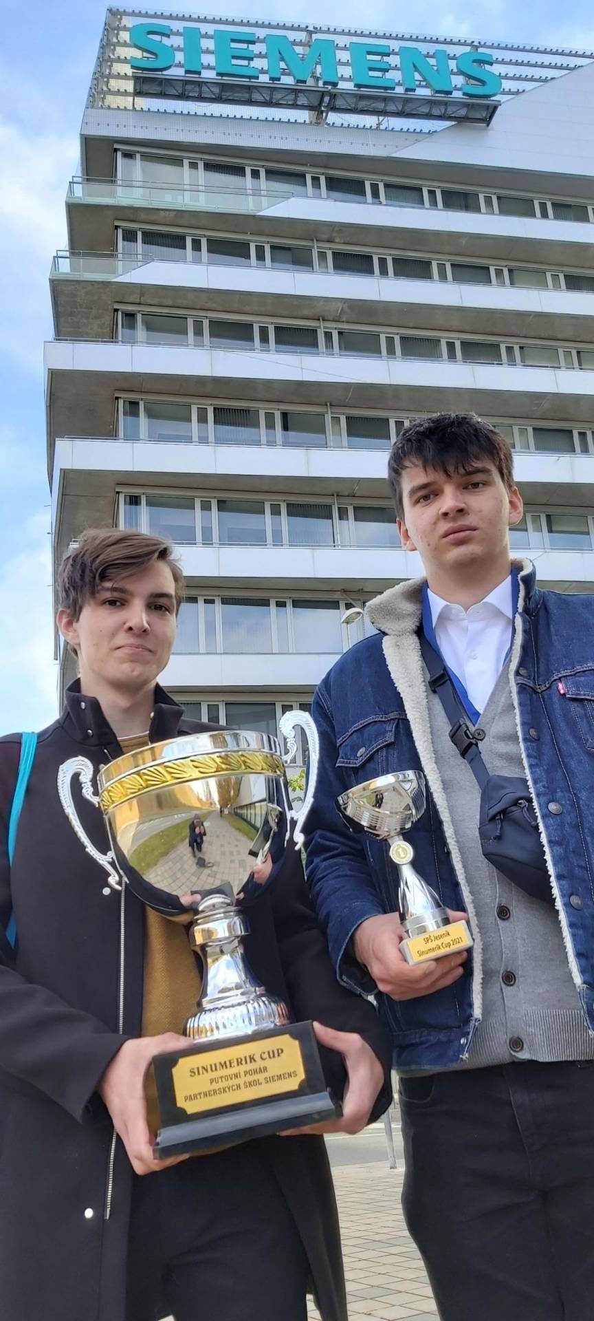 Studenti Miroslav Juhaňák a Viktor Pecina zvítězili pod vedením Jaroslava Koldy v CNC programování. Dvoučlenný tým studentů naší školy se stal vítězem 8. ročníku soutěže Sinumerik Cup, jehož finále proběhlo 25. října v pražském sídle společnosti Siemens.