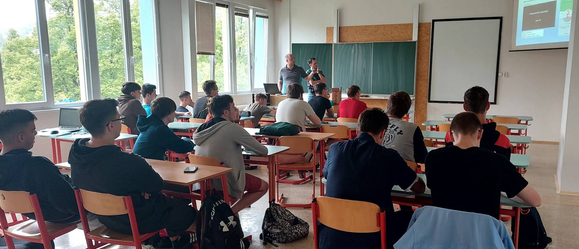 Po příjezdu do firmy se nás ujal vedoucí výroby Ing Mirek Vítek a vedoucí konstrukce Ing Pořízka Kamil, shodou okolností jsou oba absolventi naší školy. Veškeré informace o historii, programu a současnosti firmy jsme se dozvěděli během úvodní zajímavé přednášky a prezentace, která se uskutečnila u nás ve škole o týden dříve ve čtvrtek 9. 6. 2022.