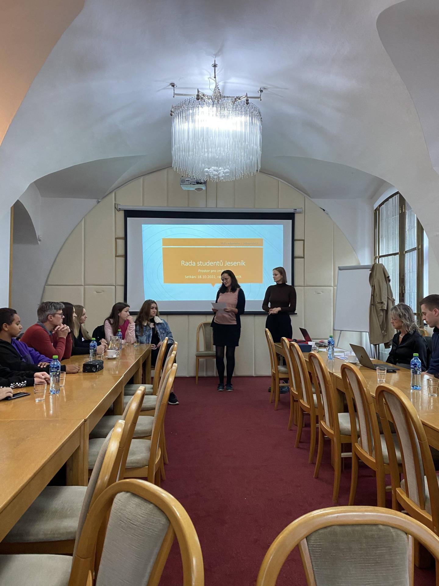 Dne 17. 10. 2022 jsme se zúčastnili setkání Rady studentů Jesenicka (RSJ). Schůzka se konala přímo v prostorách jesenické radnice a pozdravit a podpořit nás v naší činnosti přišla samotná paní starostka Zdenka Blišťanová.