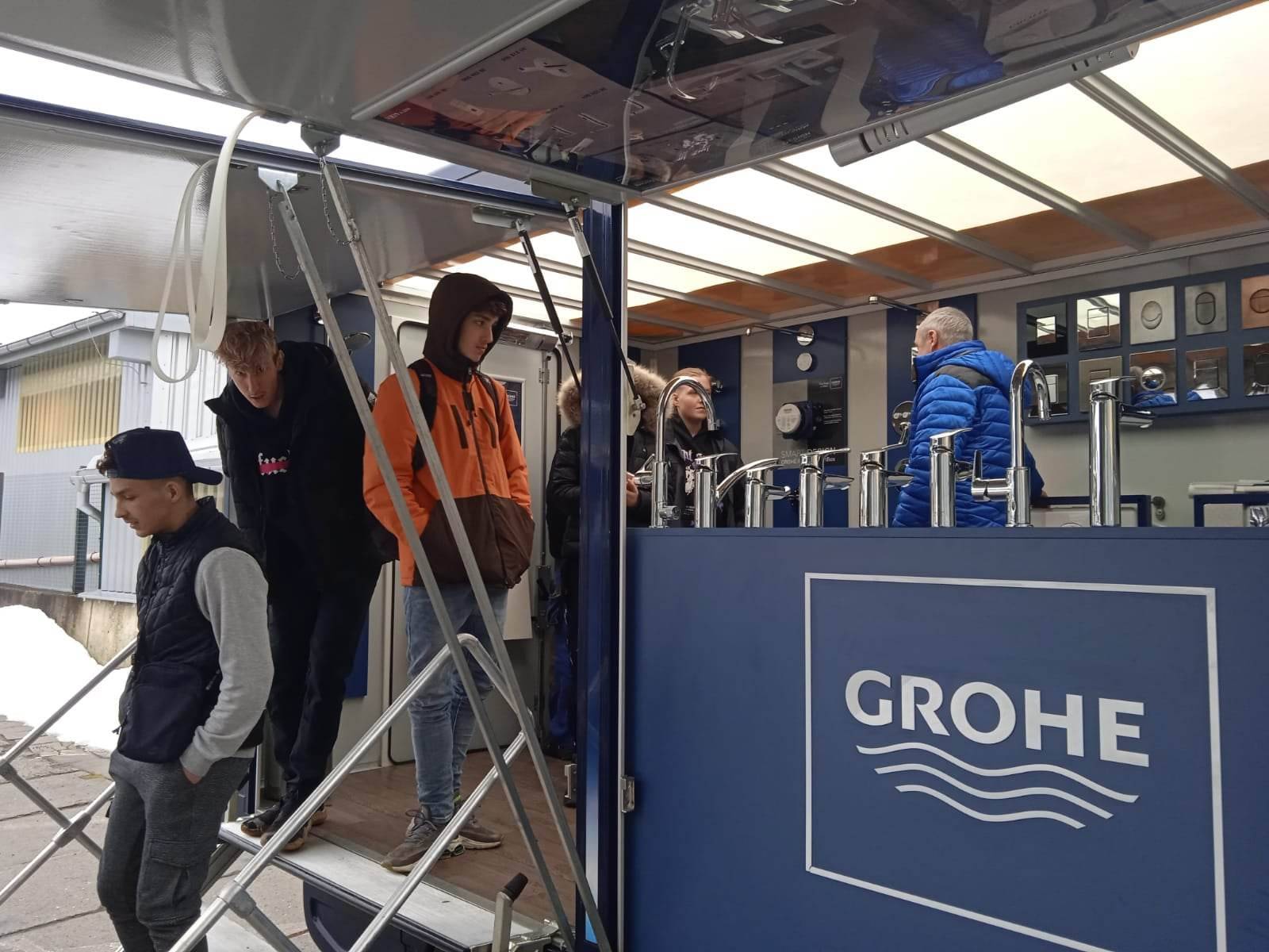 Ta v rámci programu“ Grohe do škol“ přivezla plně vybavené výukové vozidlo s novinkami v instalatérském oboru. Akce se zúčastnili žáci INS3 a INS2. Součástí akce byla přednáška o novinkách na trhu a jejich instalace, na dílně si žáci vyzkoušeli zapojení různých instalačních předmětů, proběhla soutěž mezi žáky, ve vozidle si vyzkoušeli plně funkční novinky v oboru.