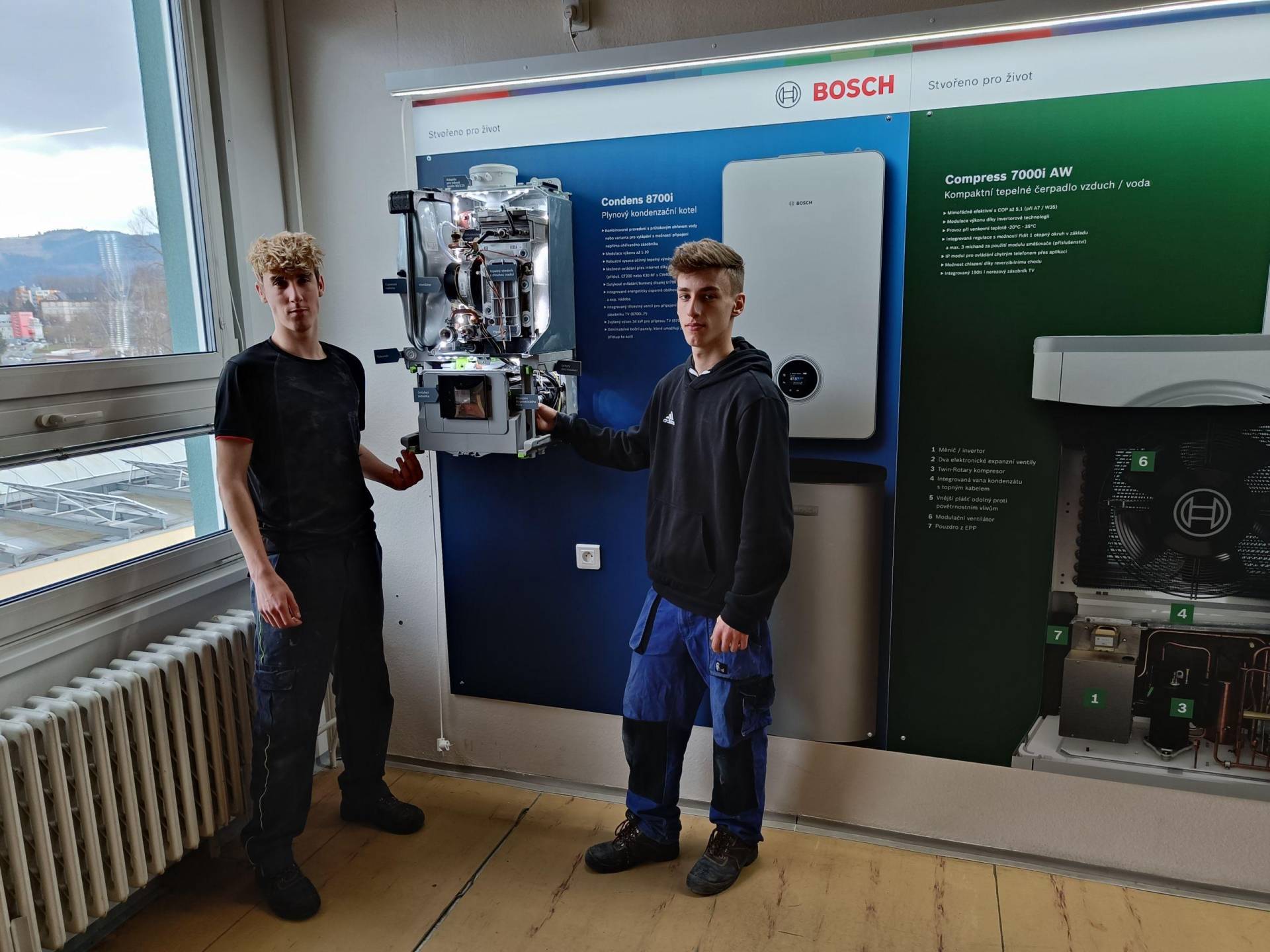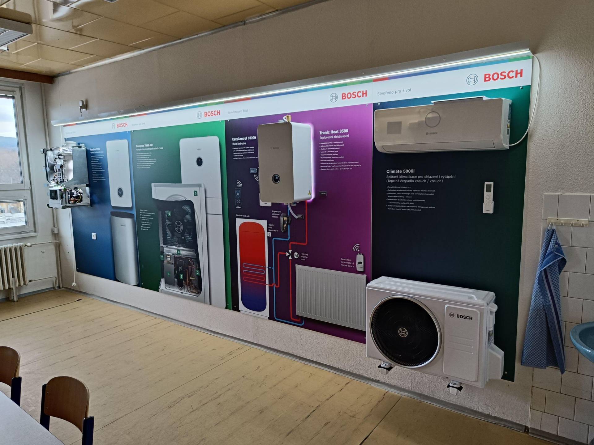 Společnost nám zapůjčila v otevřeném stavu kondenzační kotel, elektrokotel a klimatizaci k odbornému výkladu a praktické výuce našich instalatérů a elektrikářů.