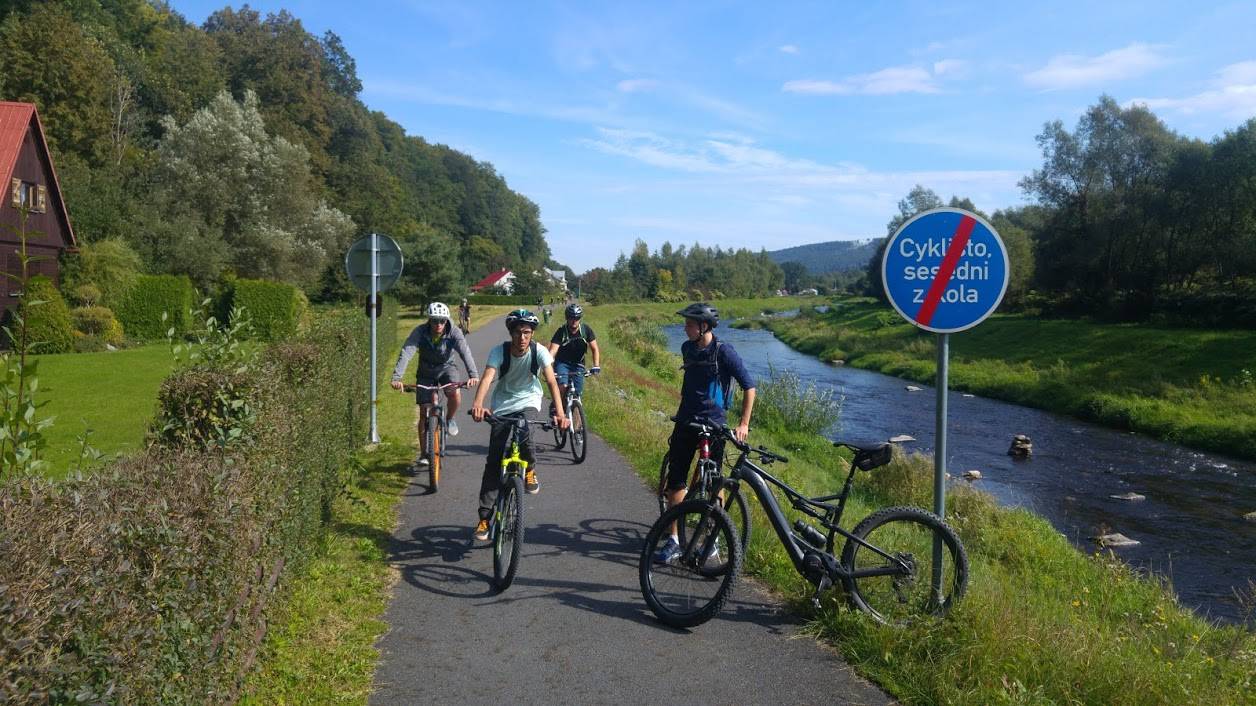 Pondělí - cyklovýlet údolím řeky BěléV pondělí 23.9.2019 se uskutečnil první den cyklokurzu. Sraz byl před kinem Pohoda a odtud jsme za pěkného podzimního počasí v počtu téměř 40 cyklistů vyrazila na výlet směr polské příhraničí. Projeli jsme postupně Českou Ves, Supíkovice až na hranice ve Velkých Kuněticích. Za hranicemi jsme absolvovali trasu do Gieralčic do Glucholaz. Nakonec jsme po nové cyklostezce přes lázně v Glucholazích ppodél řeky Bělá dojeli do Mikulovic a odtud po cyklostezce zpět do Jeseníku. Celkově jsme ujeli téměř 60 km pohodovým terénem bez výraznějšího stoupání. |