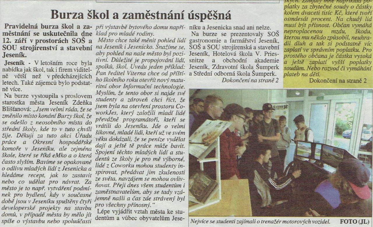 V letošním roce byla nabídka jak škol, tak i firem viditelně větší než v předcházejících letech. Také zájemců bylo podstatně více. Věříme, že tento trend bude i v dalších ročnících a prohloubí se tak spolupráce škol a místních firem.