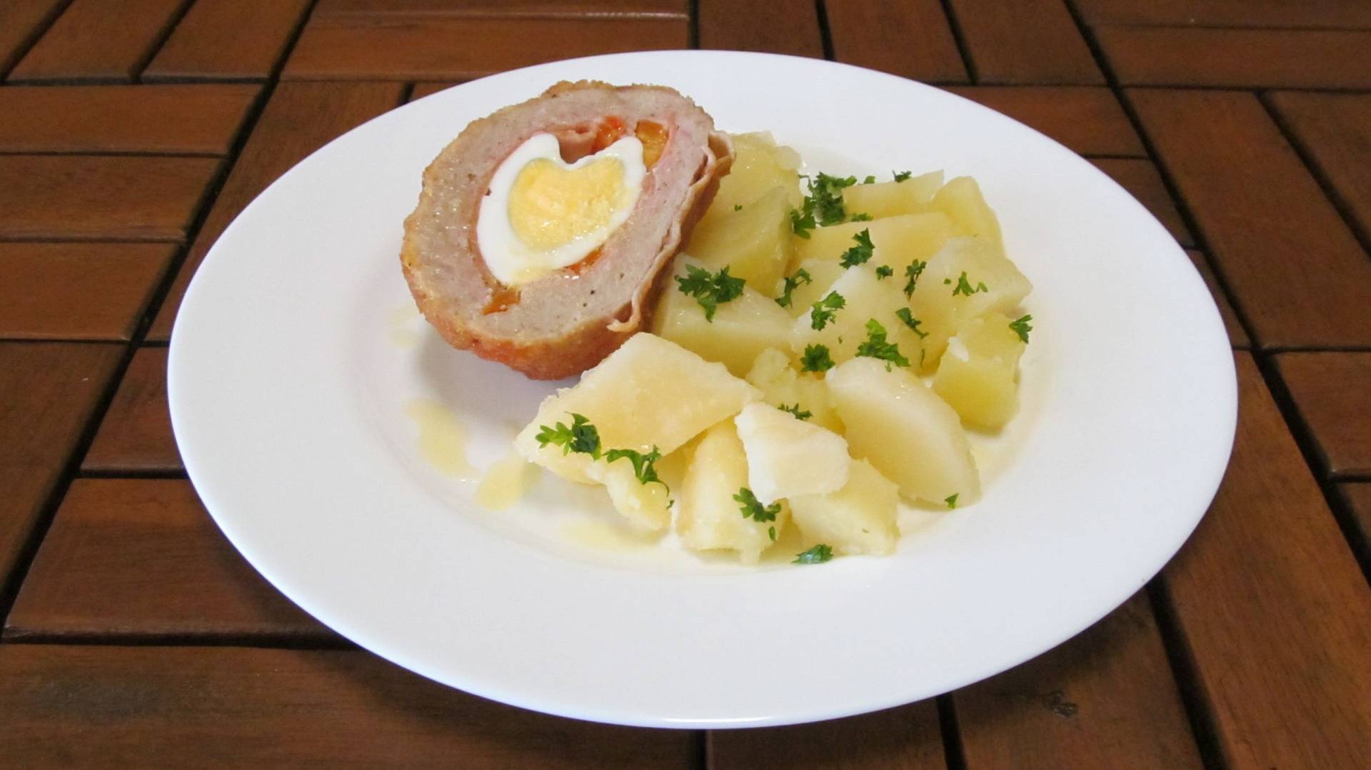 šumperské vejce, brambory s máslem (Hlavní chod)