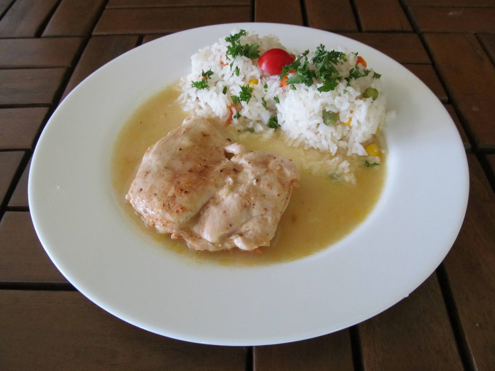 přírodní kuřecí řízek, dušená rýže