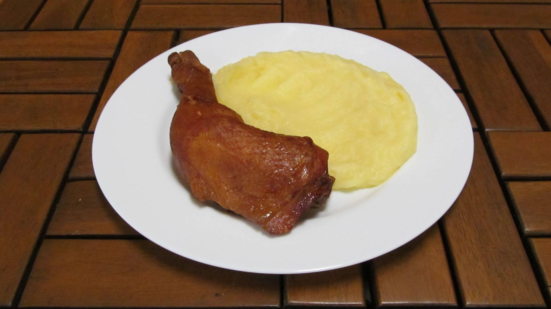 uzené kuřecí stehno, bramborová kaše (Hlavní chod)