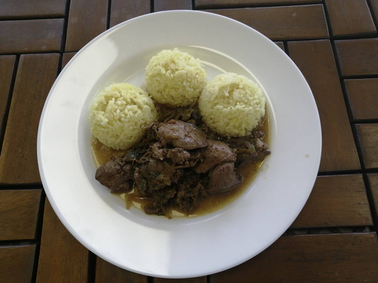 Drůbeží játra s pórkem, Dušená ráýe (Hlavní chod)