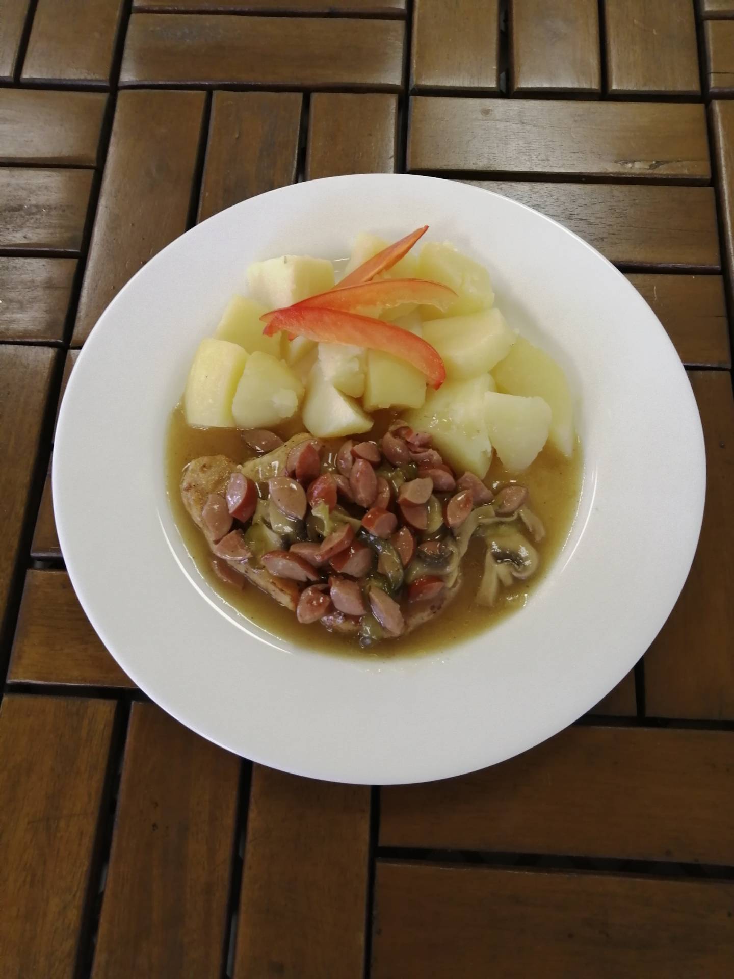 putimský vepřový plátek ( žampiony, párek, okurek ) (Hlavní chod)