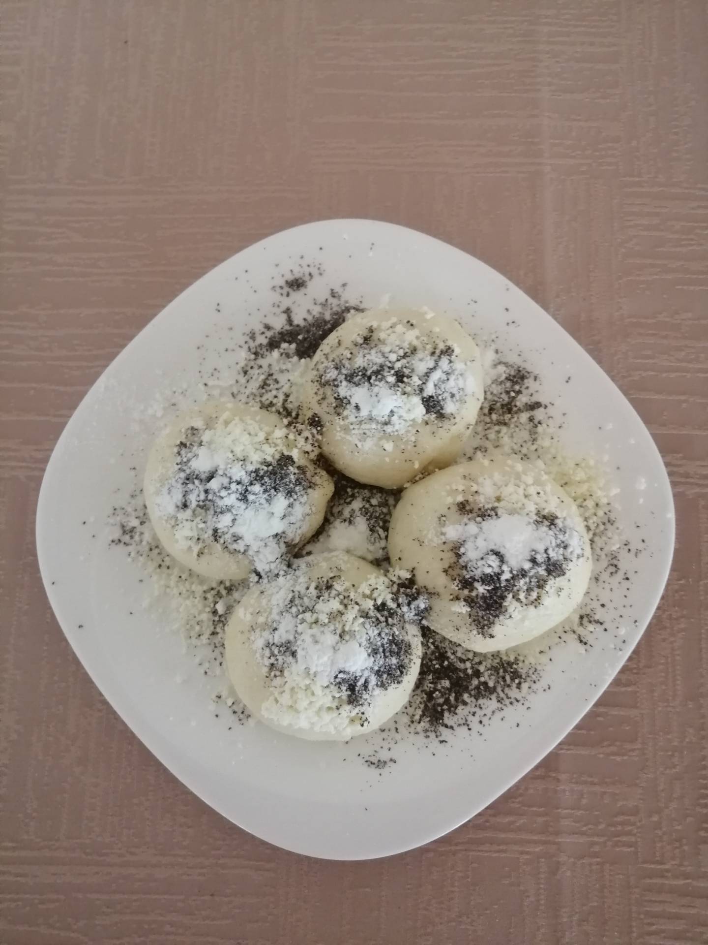 ovocné knedlíky s borůvkovým džemem, sypané strouhankou a přelité máslem (Hlavní chod) AlergenyLepek | Vejce | Mléko Další foto