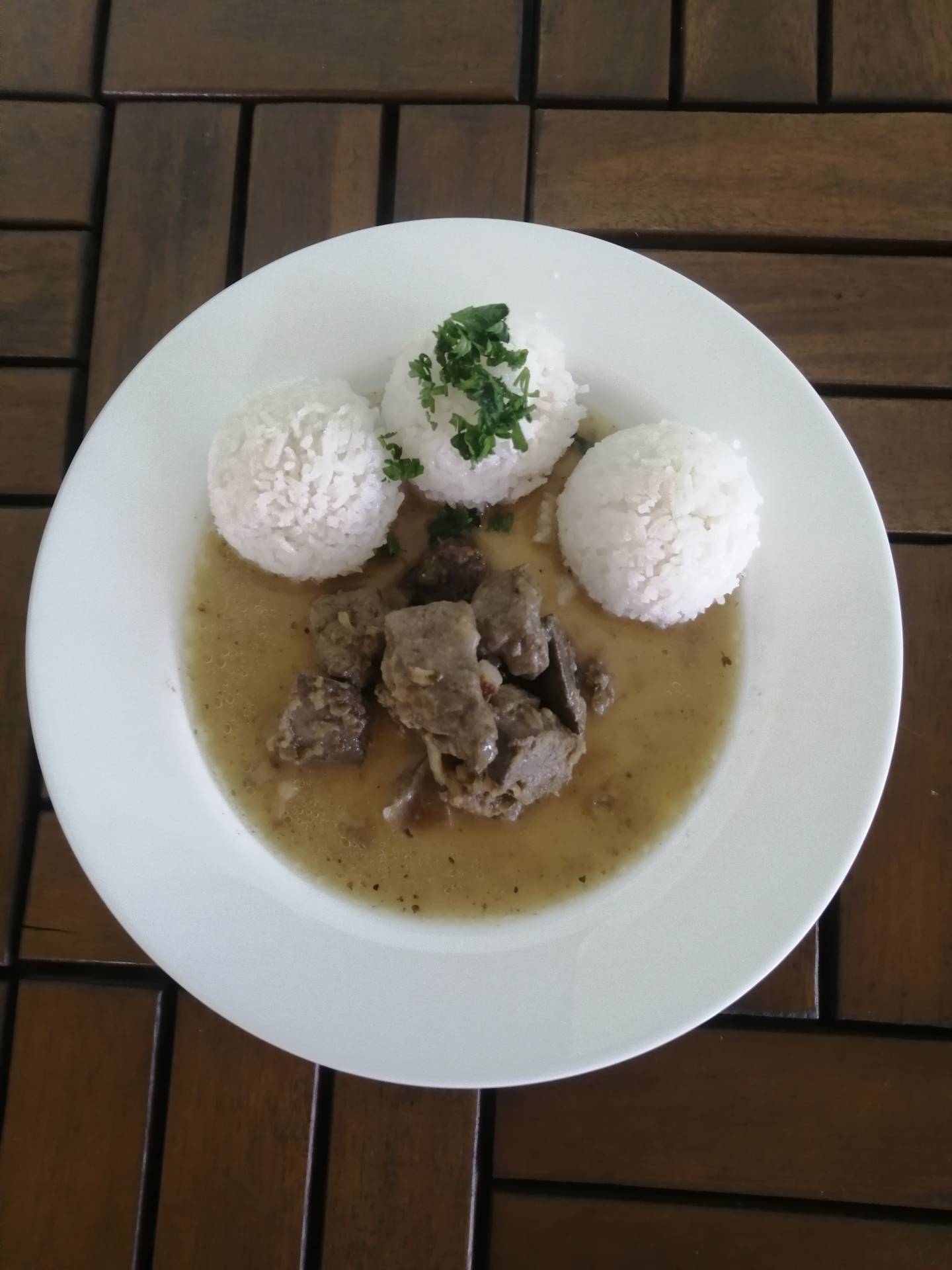 vepřová játra na slanině, rýže s petrželí (Hlavní chod)