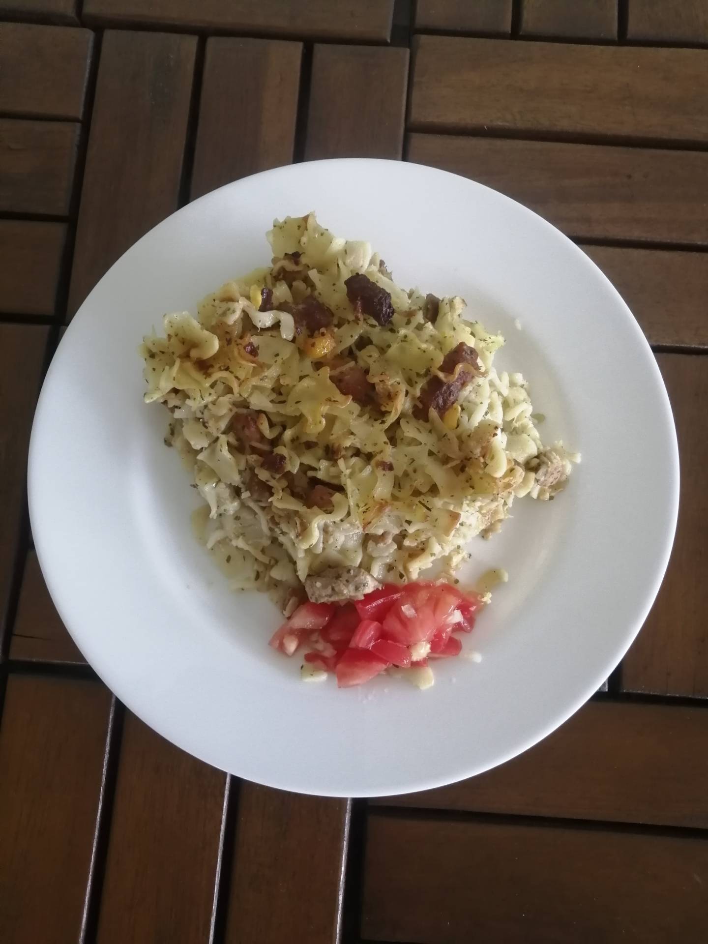 zapečené těstoviny s vepřovým masem a zeleninou (Hlavní chod)