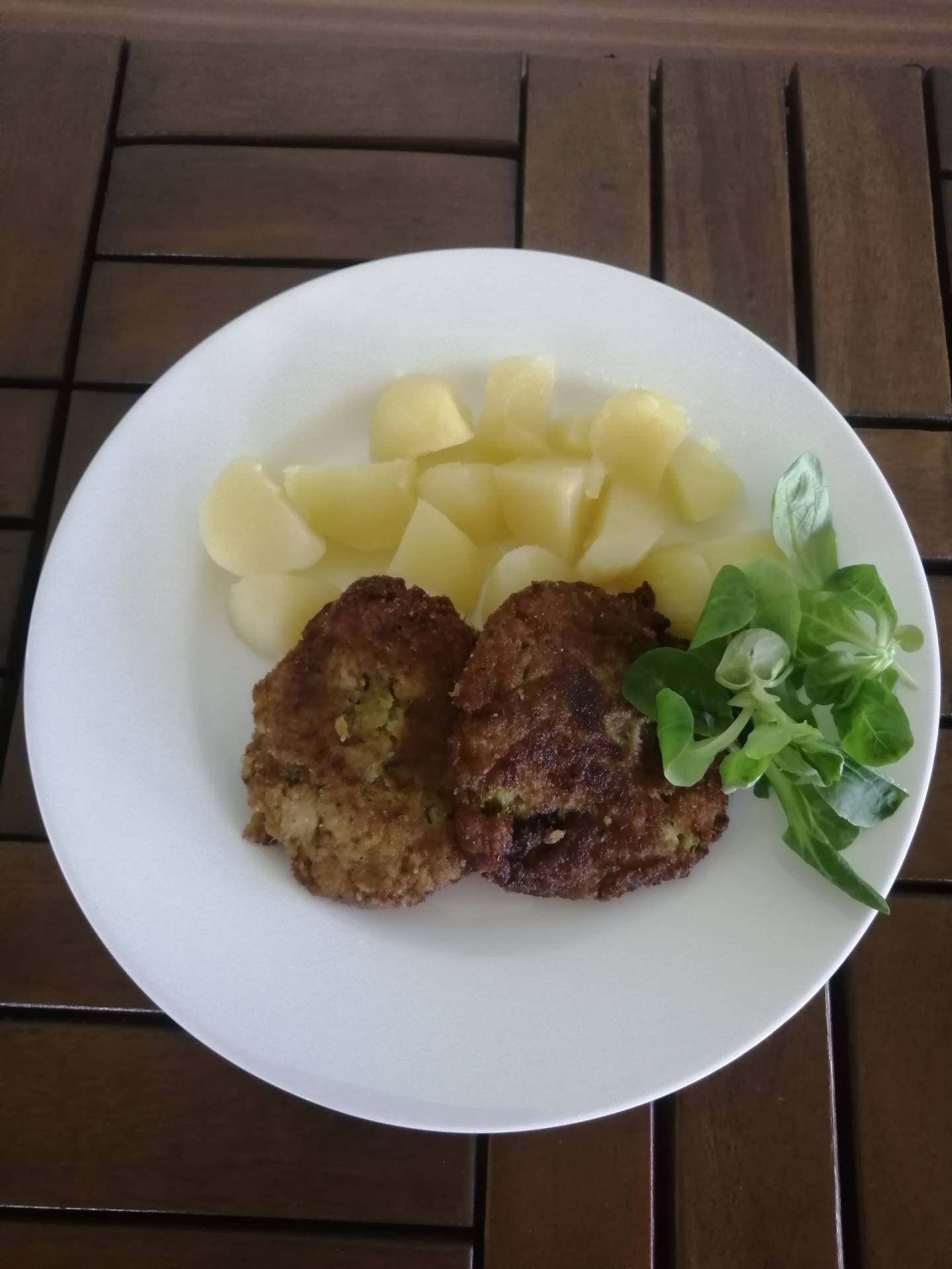 zeleninové karbenátky, vařené brambory s máslem (Hlavní chod)