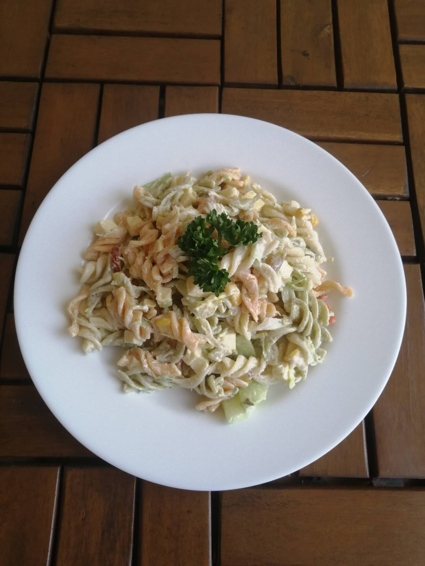 těstovinový salát se zeleninou a sýrem (bezmasé) (Hlavní chod)