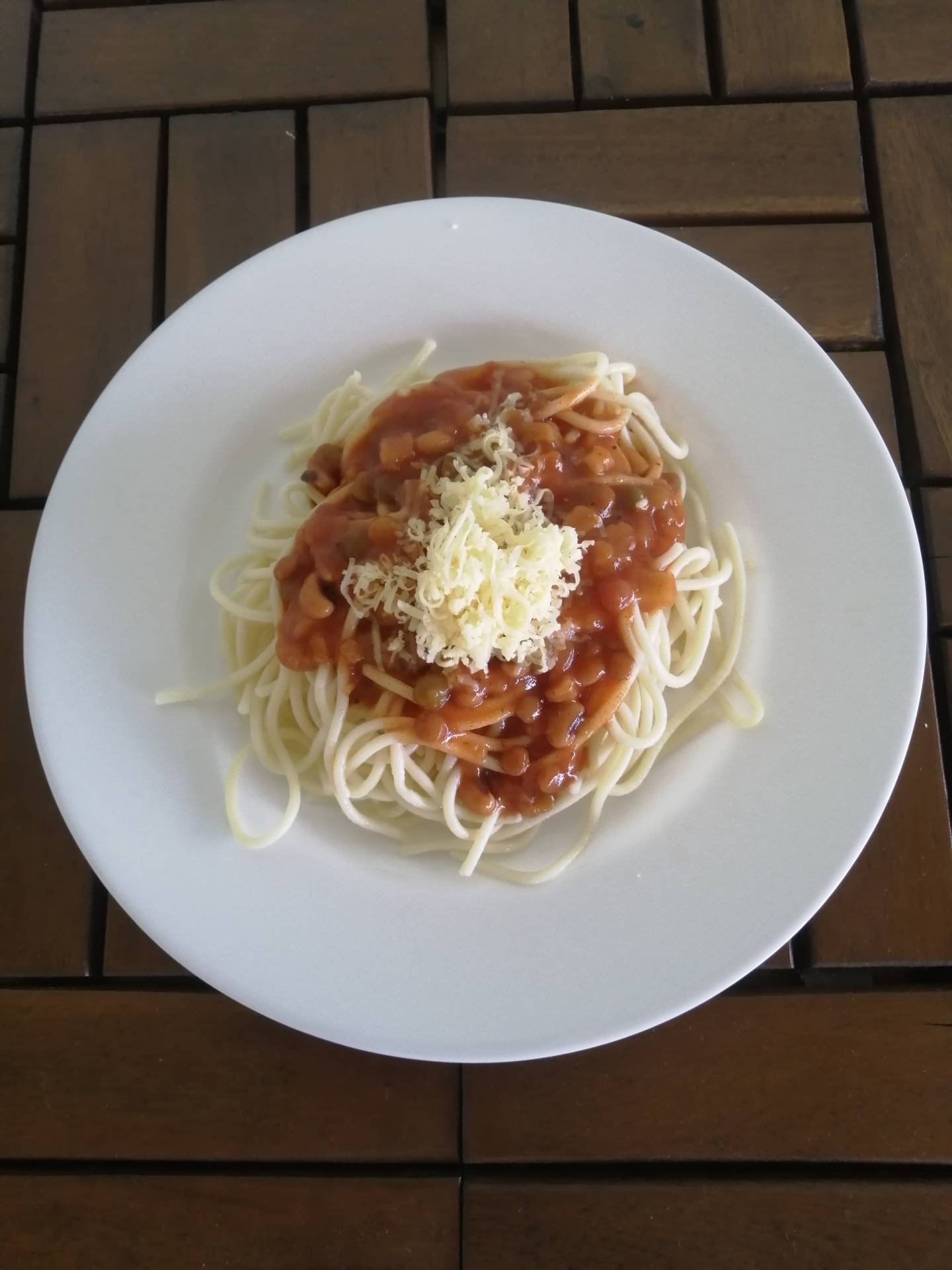 boloňské špagety s luštěninovou směsí a sýrem (Hlavní chod)