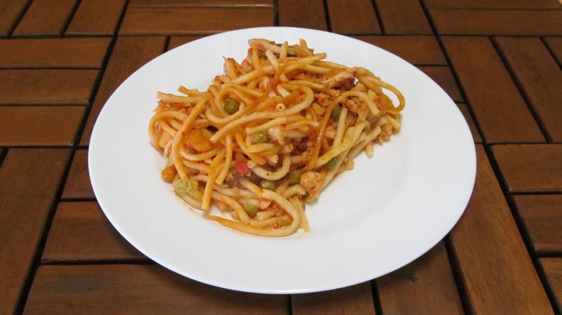 zapékané makarony s drůbežím masem a zeleninou (Hlavní chod)
