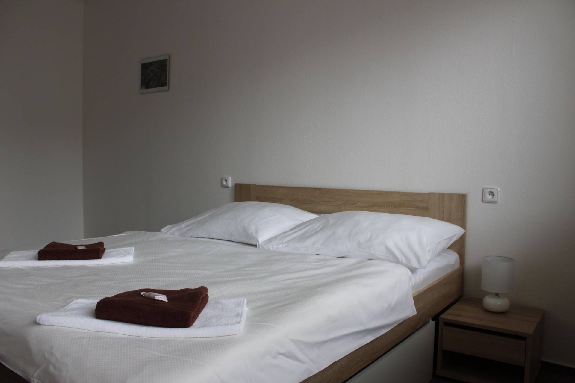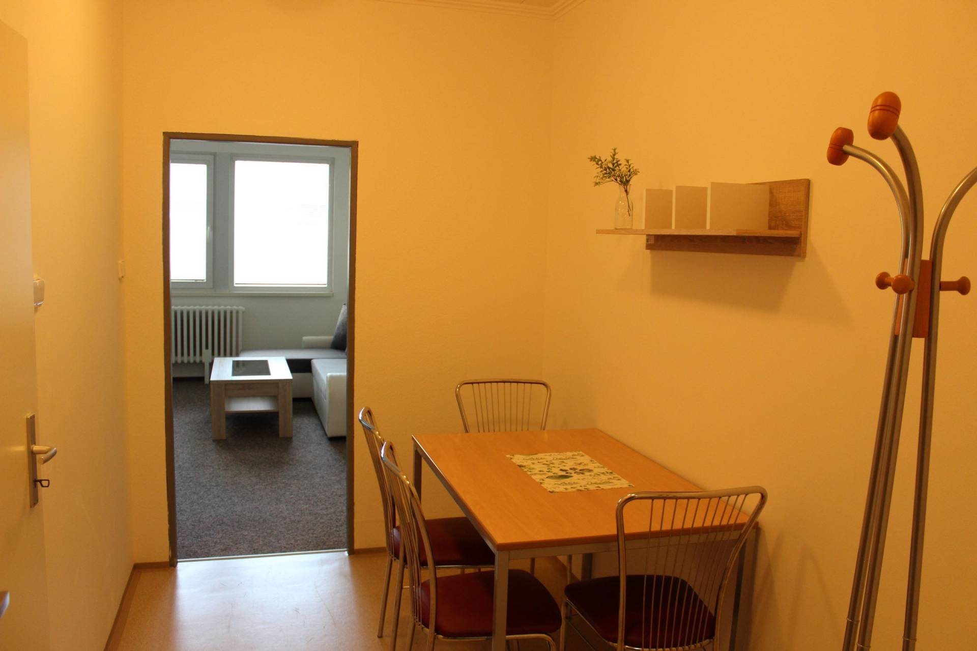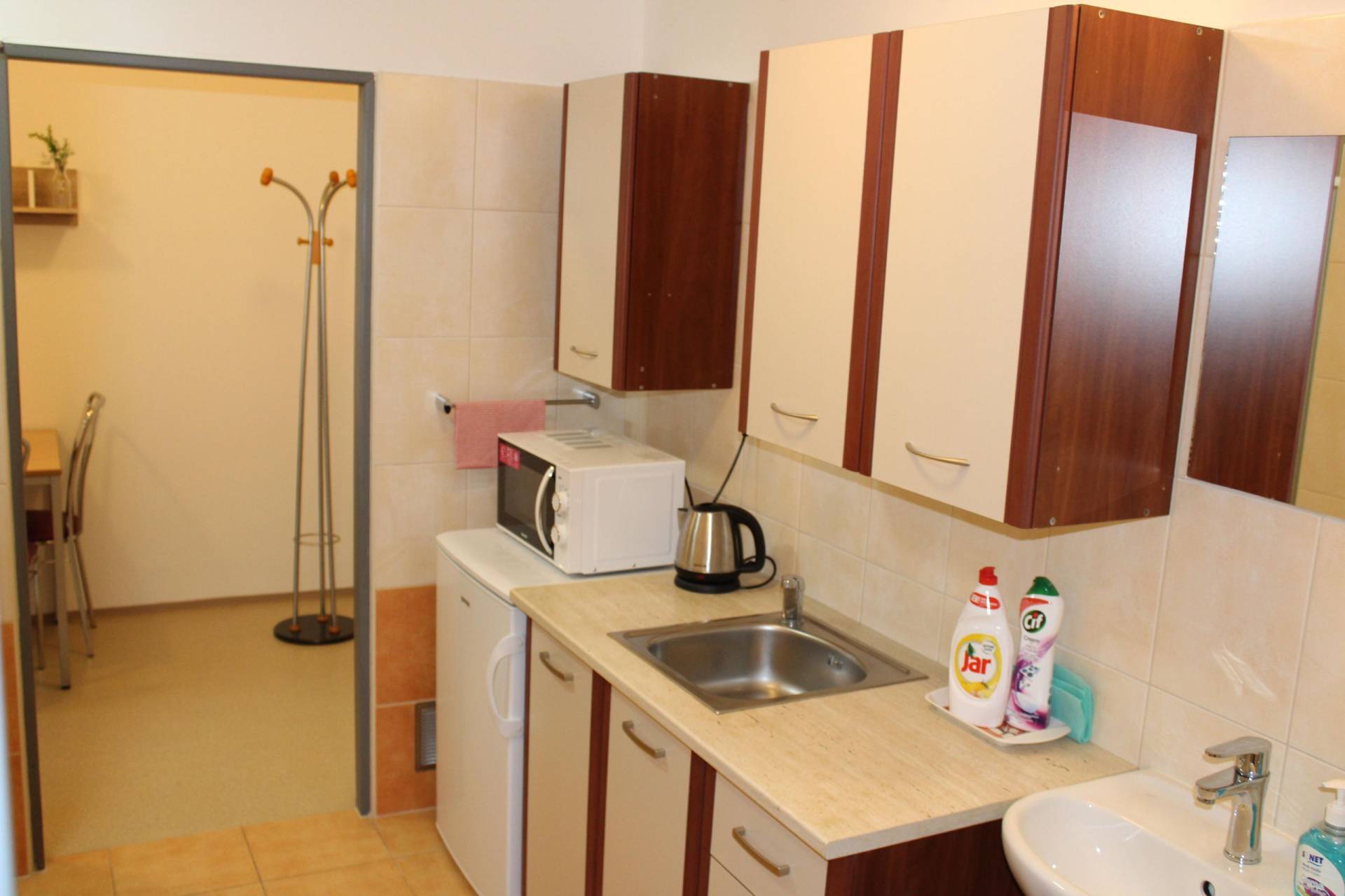 | Max. kapacita | | 5 lůžek (rozkládácí pohovka pro 2 - lze i pro 6 osob) | | Internet | | Wi-Fi | | Stravování | | Ve školní jídelně: Snídaně, obědy, večeře – v době školního provozu a o prázdninách pro větší skupinu po dohodě | | Koupelna | | Samostatná, sprchový kout a WC, ručníky, toal. potřeby | | Praktické vybavení a služby | | Kuchyňský kout (standardní vybavení), větrák, sušák na prádlo, TV | | Pro Vaše pohodlí | | Úklid (v týdnu). Recepce Po - Pá 7:00 - 15:30 hod., So - Ne dle dohody pouze pro potřeby ubytování. Možnost zakoupení cukrovinek, nealko nápojů v automatech. Automat na kávu, teplé nápoje a bagety. |