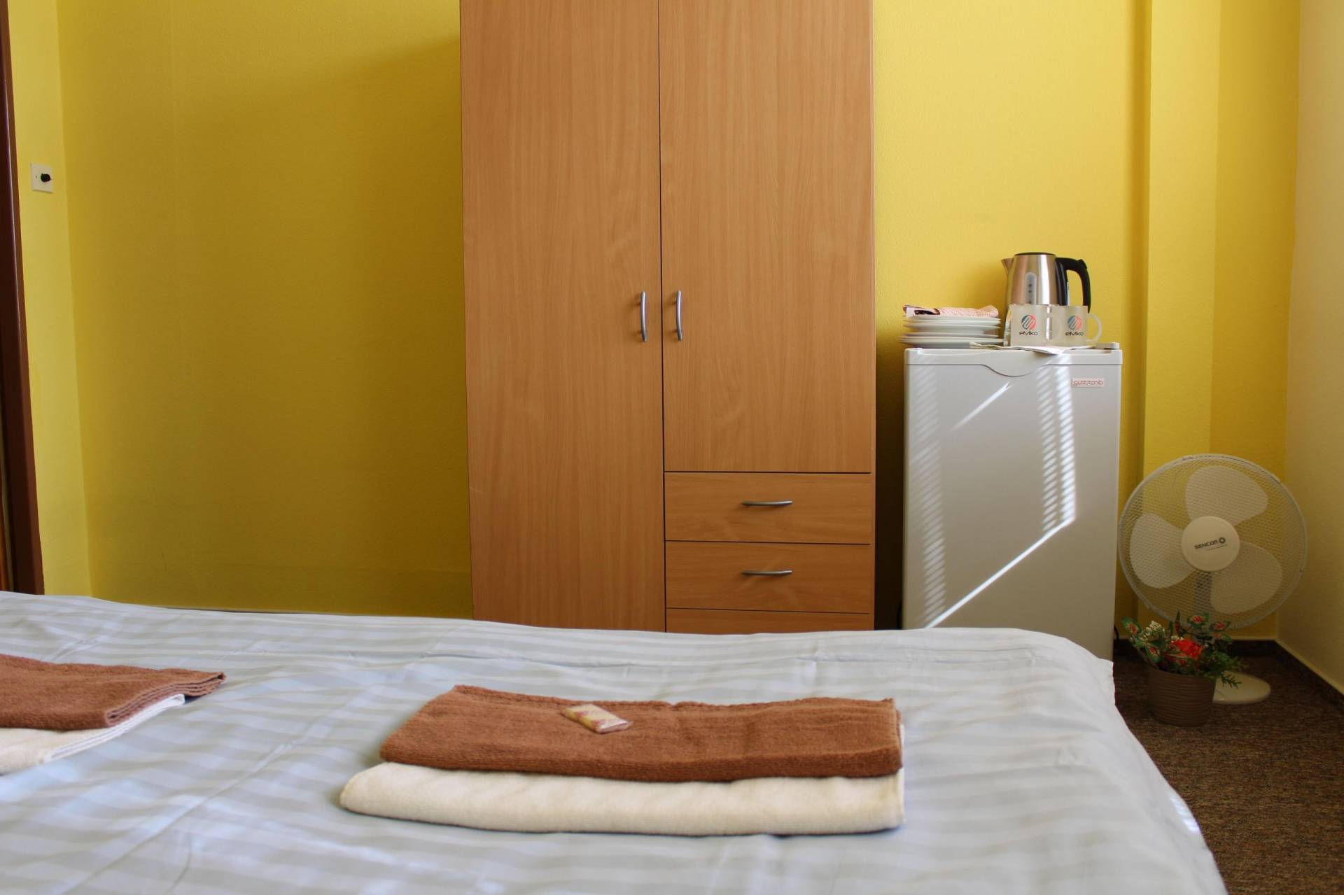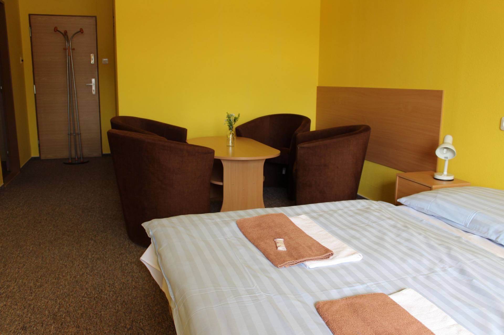 | Max. kapacita | | 4 lůžka | | Internet | | WiFi zdarma. | | Stravování | | Ve školní jídelně: Snídaně, obědy, večeře – v době školního provozu a o prázdninách pro větší skupinu po dohodě | | Koupelna | | Samostatná, sprchový kout, ručníky, toal. potřeby | | Praktické vybavení a služby | | Kuchyňský kout (standardní vybavení), větrák, sušák na prádlo, TV | | Pro Vaše pohodlí | | Úklid (v týdnu) Recepce Po - Pá 7:00 - 15:30 hod., So - Ne dle dohody pouze pro potřeby ubytování. Možnost zakoupení cukrovinek, nealko nápojů v automatech. Automat na kávu, teplé nápoje a bagety. |