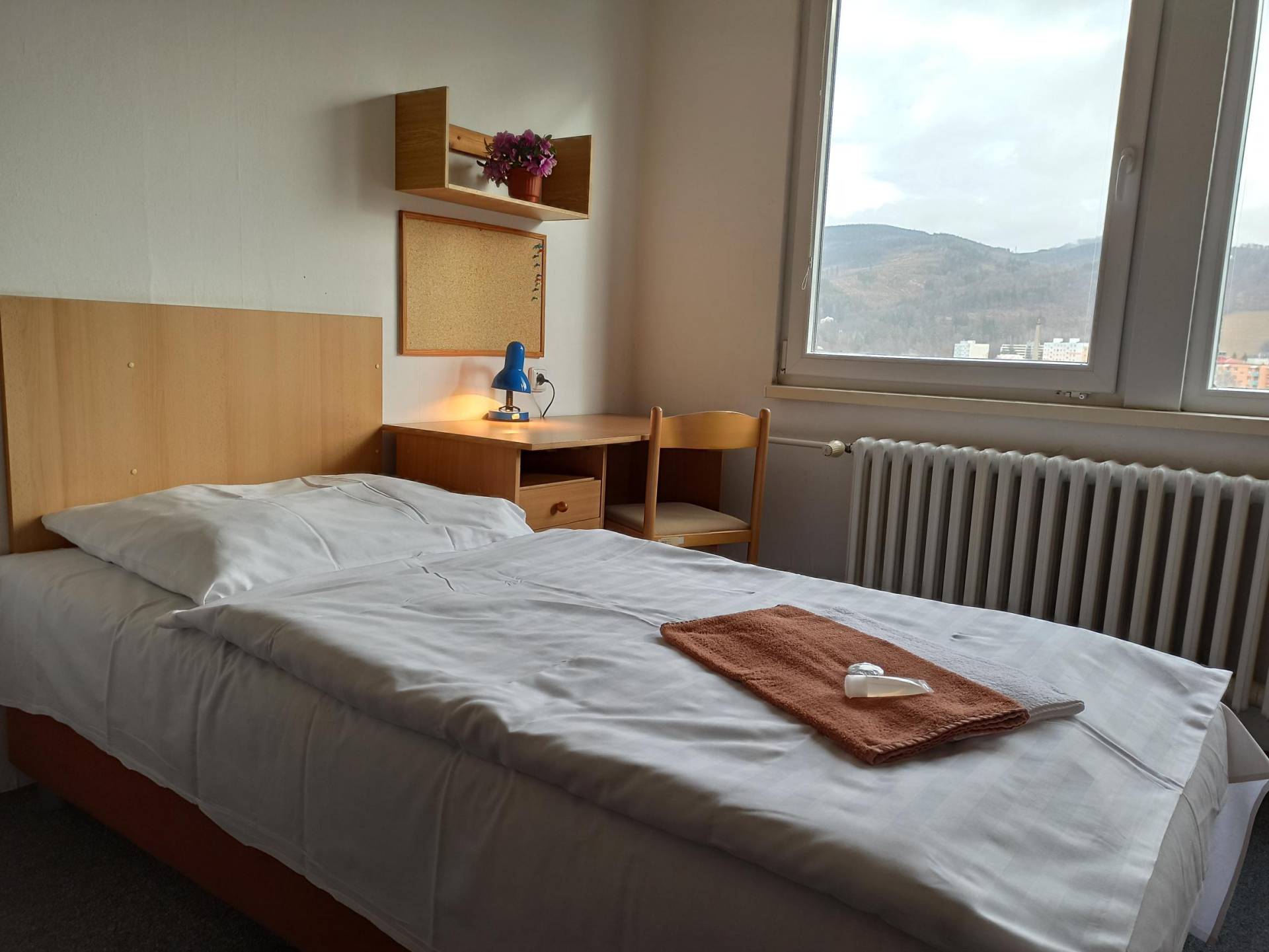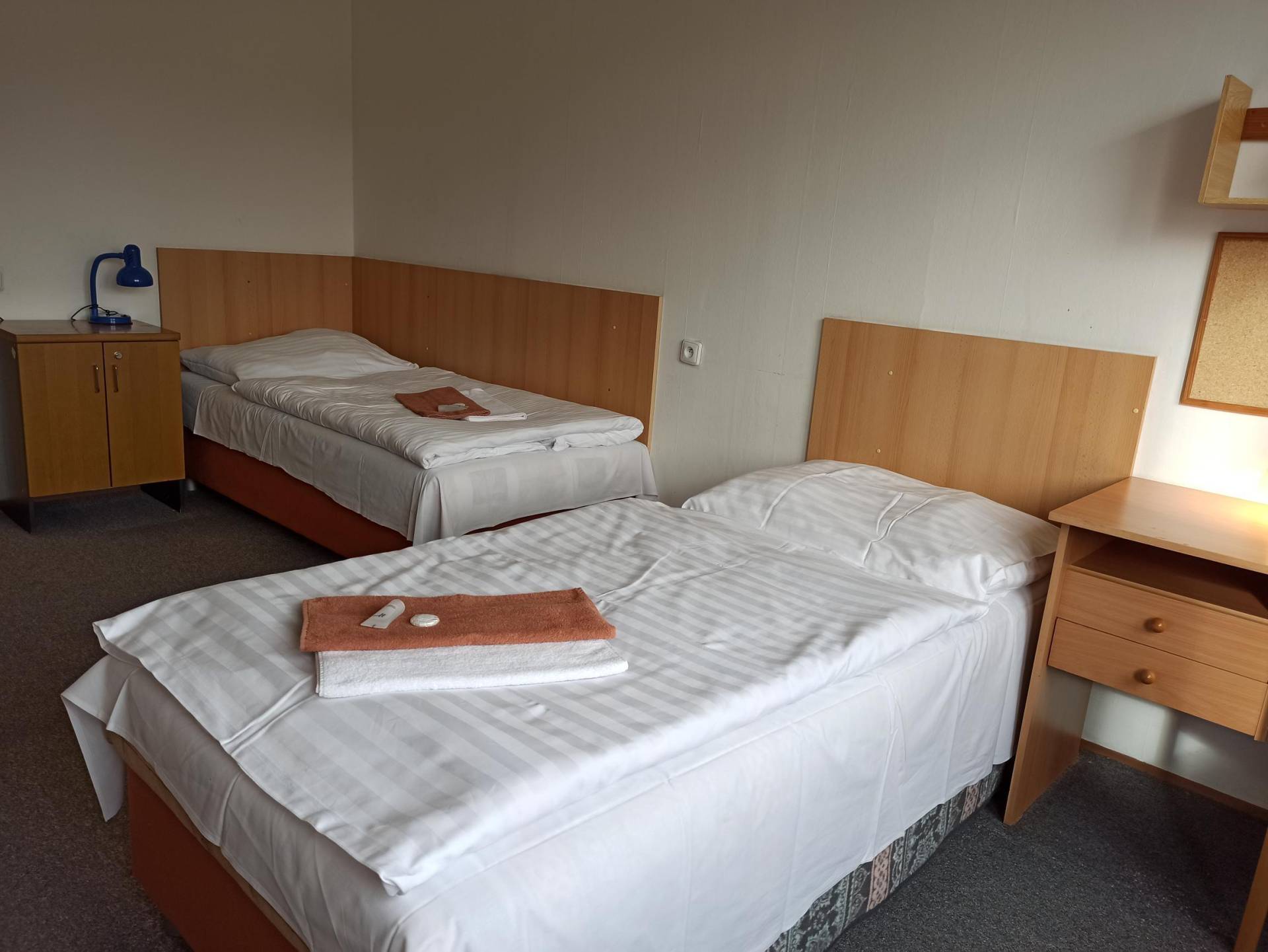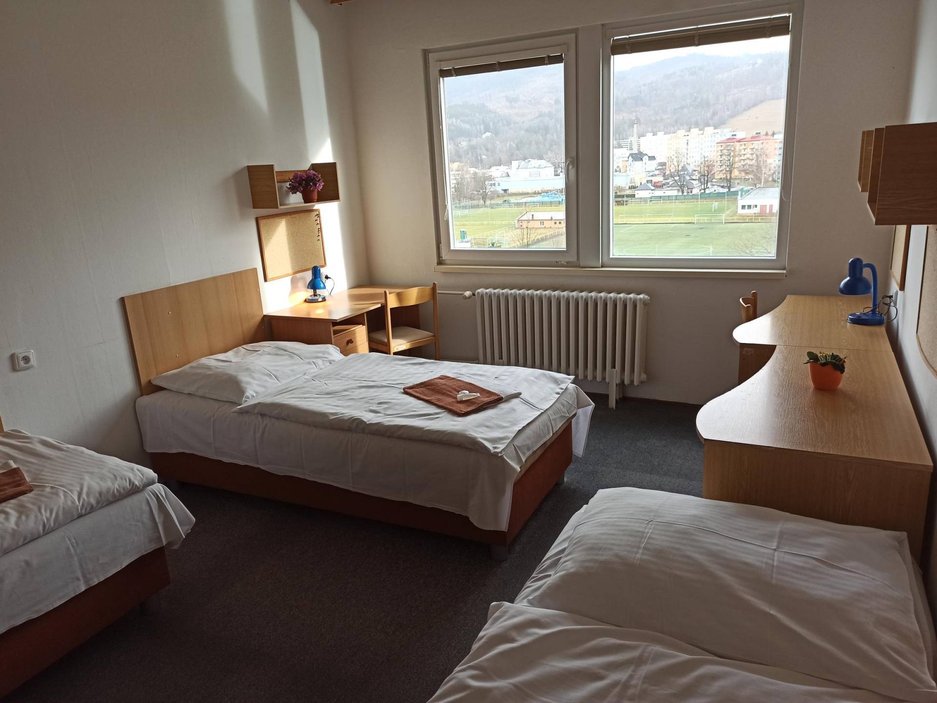2 – 3 lůžk. (dvoj buňka) | Max. kapacita | | 5 lůžek | | Internet | | WiFi zdarma | | Stravování | | Ve školní jídelně: Snídaně, obědy, večeře – v době školního provozu a o prázdninách pro větší skupinu po dohodě | | Koupelna | | Společná, sprchový kout, ručníky, toal. potřeby | | Praktické vybavení a služby | | Společná kuchyňka v patře (varná konvice, mikrovlnná trouba, pračka), sporák není součástí vybavení | | Pro Vaše pohodlí | | Úklid (v týdnu). Recepce Po - Pá 7:00 - 15:30 hod., So - Ne dle dohody pouze pro potřeby ubytování. Možnost zakoupení cukrovinek, nealko nápojů v automtu. Automat na kávu, teplé nápoje a bagety. |
