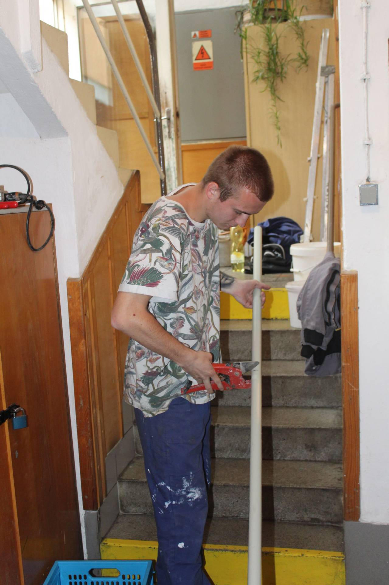 Oprava vodovodního řádu našimi žákyHavárie vodovodního řádu? Pro naše žáky učebního oboru Instalatér pod vedením zkušeného učitele odborného výcviku Wernera Skříšovského to není až takový problém. V rámci produktivní práce žáci provedli opravu vadného vodovodního rozvodu v chatě Čertovy Kameny. Pan Roman Bašič, majitel chaty, je spokojený a po krátké výluce mohl opět začít poskytovat své služby návštěvníkům oblíbeného výletního místa. |